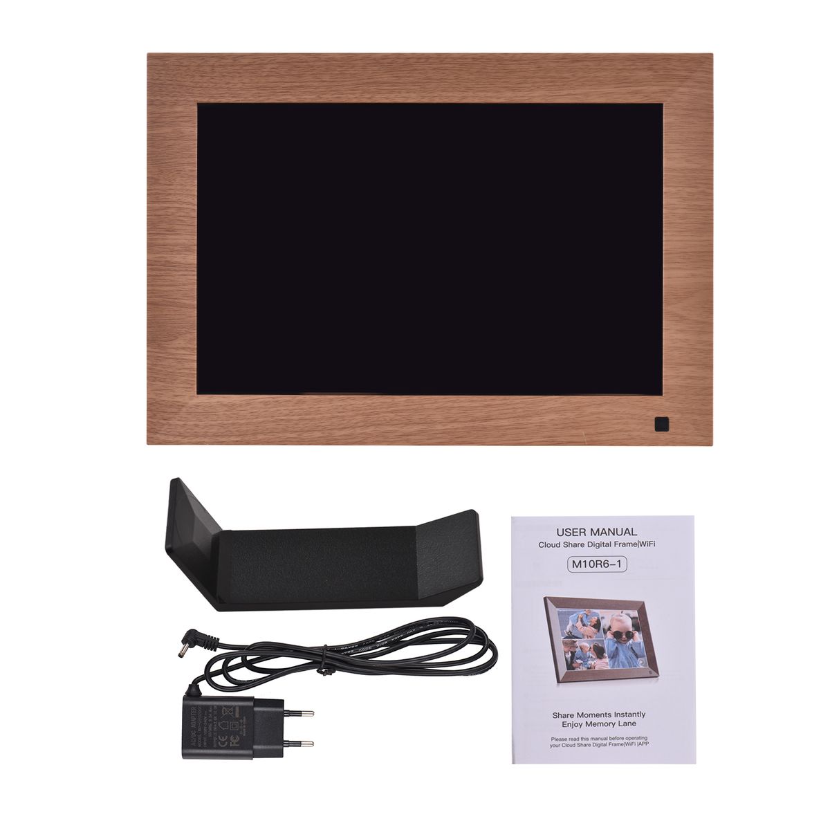 1 x Digital Photo Frame,1 x Backside Stand,1 x Adapter,1 x User Manual(English)