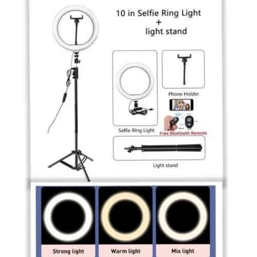 Buy 10 Inches Ringlight With Tripod Stand & Bluetooth Shuttle Remote For Selfie 3 Modes Light in Nigeria