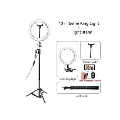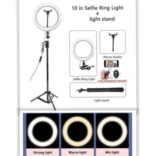 10 Inches Ringlight With Tripod Stand & Bluetooth Shuttle Remote For Selfie 3 Modes Light