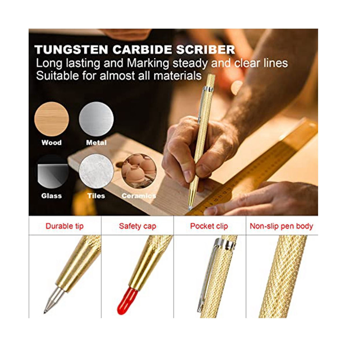 [Precise Metal Carbide Scribe]:This carpenter's scribing tool has a reliable tungsten carbide tip and a knurled aluminum body, not easy to slip.Automatic center punch with spring core and adjustable force, making the center punch a breeze to use, simple and making it easy to accurately mark a centering point for drill holes.