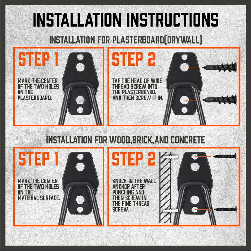 -With screws and expansion screws, the garage wall hook is suitable for plaster, wood and brick walls. The extended plate design distributes the weight evenly, which provides superior grip.