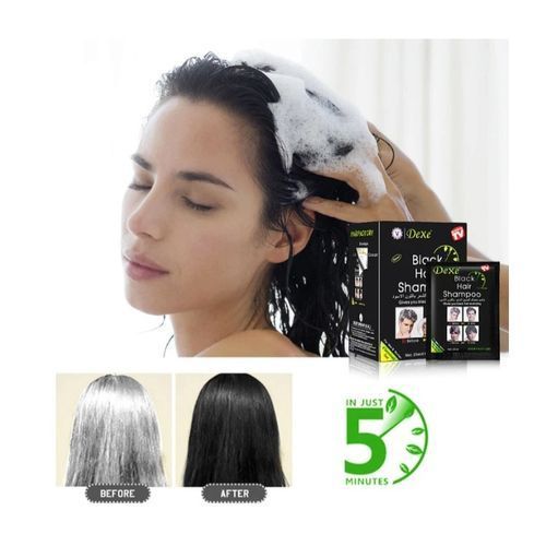 This shampoo washes and colors(black) your hair in just 5 minutes and lasts up to 4 weeks. This product has no adverse effect on your hair