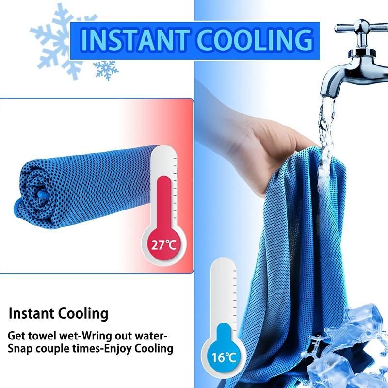 Fast cooling tool, durable: the super superfine fiber of the net-like towel can adjust the internal moisture, and according to the physical evaporation of the moisture, you will catch a cold in a few seconds. Just like sweat on your skin, it cools when the water evaporates. No chemicals are used in the production of cold towels.