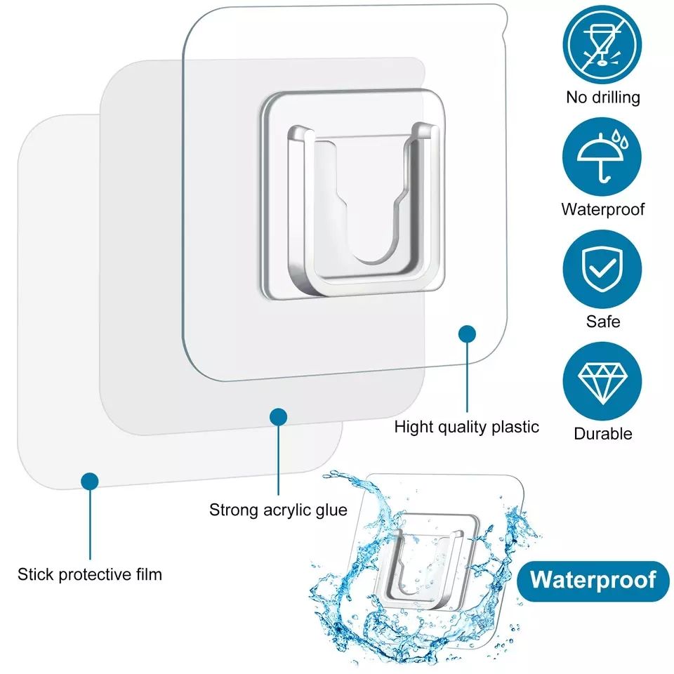 Packaging: 10 pairs/bag. Our heavy duty adhesive transparent hooks to meet your needs in the living room, bathroom, kitchen, bedroom, garage or any other spaces, simple transparent invisible, clean and tidy, time can not change its color, long also durable. Our adhesive wall hooks make your home look clean and neat all the best, it add more joy and happiness of your life!