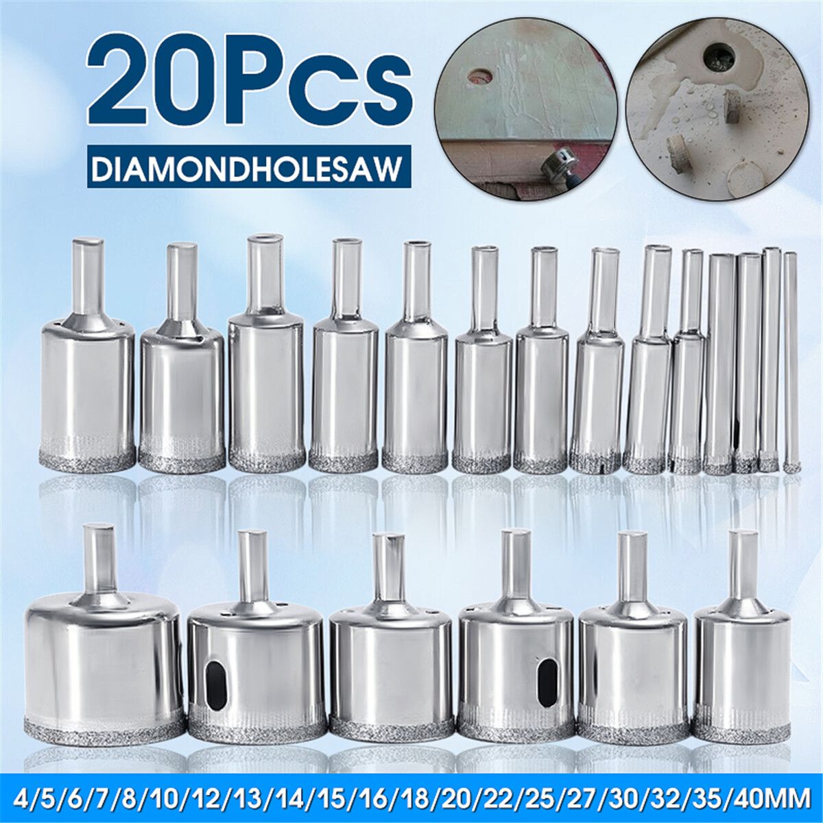These Diamond Bits are Capable of Drilling into Extremely Hard Materials Such as and Glass. Use a Low Speed Setting and Proper Cooling, Such as Water, to Ensure Longer Lasting Life.