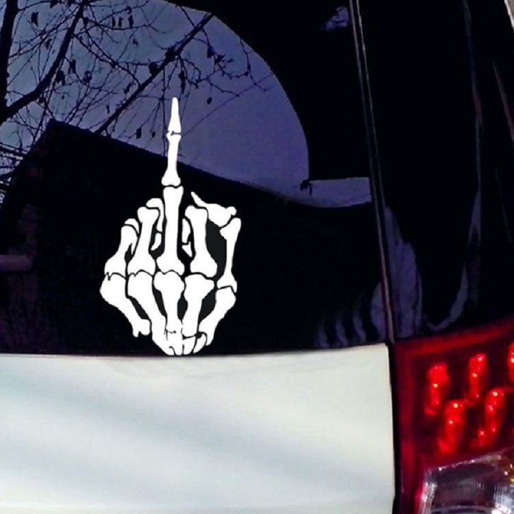 10 PCS Anti-High Beam Car Sticker Middle Finger Despise Reflective Car Sticker Bones Motorcycle Sticker(White)