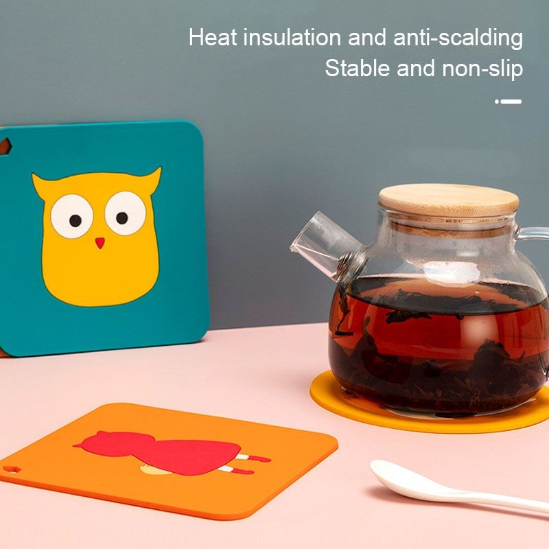5. Features: cartoon pattern, beautiful and practical, heat insulation and anti-scalding, stable anti-skid, protection of the desktop is not easy to burn, strong and durable, strong flexibility and not easy to deform, easy to clean, can be hanged with hanging holes, polished corners without burrs Broken hand