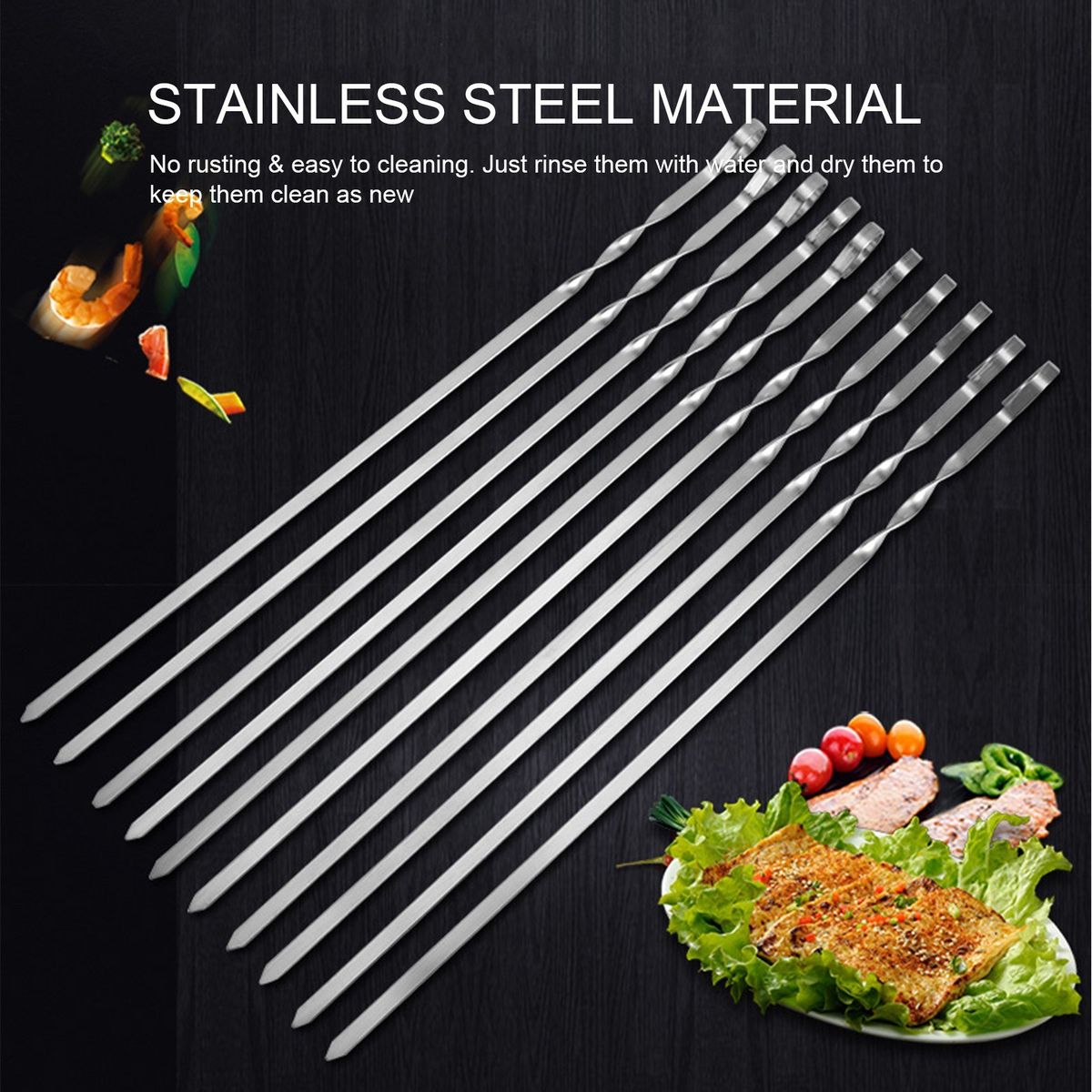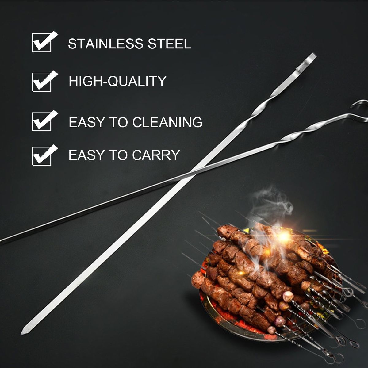 [Easy to Cleaning]After using these stainless steel barbecue sticks, just rinse them with water and dry them to keep them clean as new.