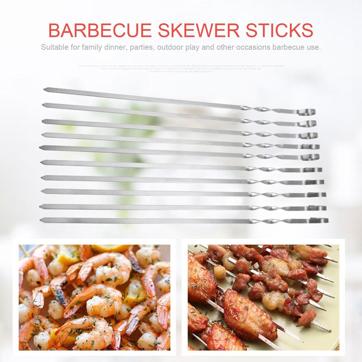 [High-quality]This bbq skewers is made of food-grade 304 stainless steel, which is reusable and strong, also rust-resistant for long-term use.