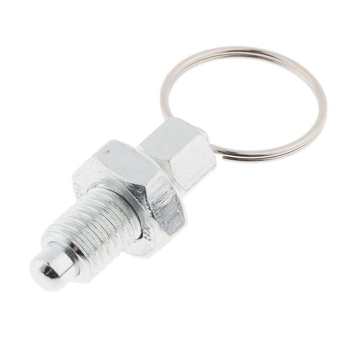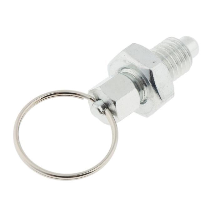 Stainless steel plunger body with pin and pull ring, metric coarse thread.