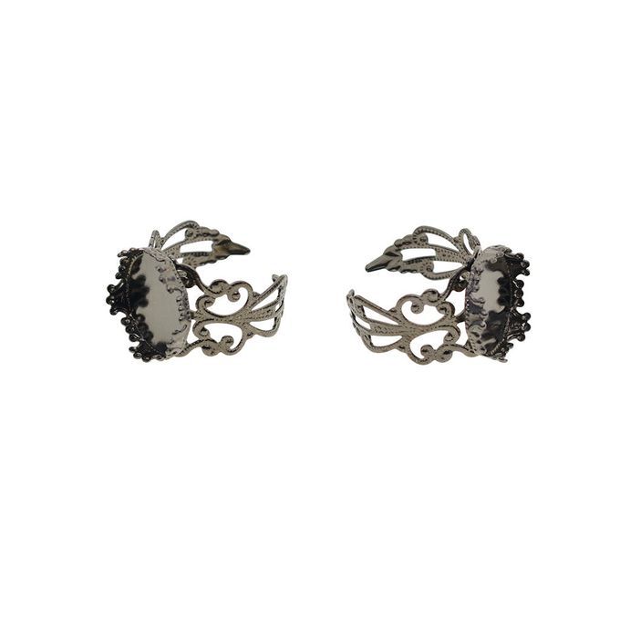10 pcs Victorian 15mm Blank Crown Bezel Base Adjustable Filigree Ring Hematite