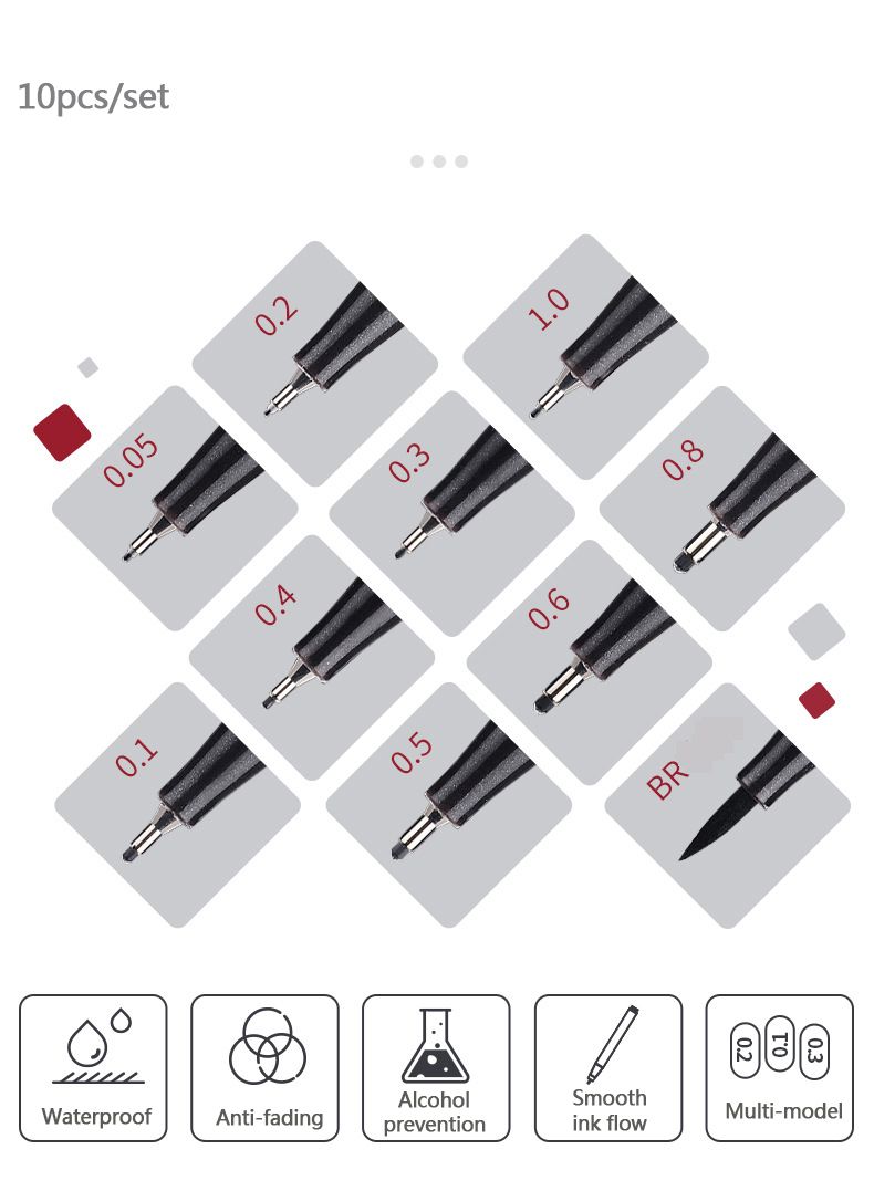 1*10 Pcs Waterproof Needle Drawing Sketching Pens Ca