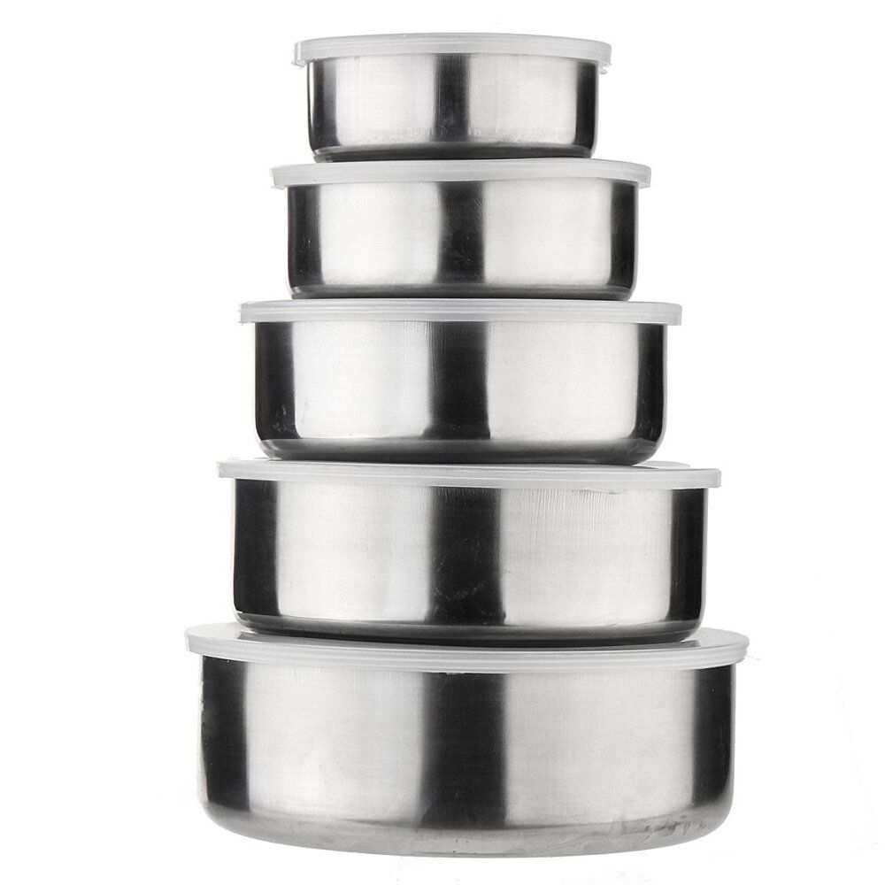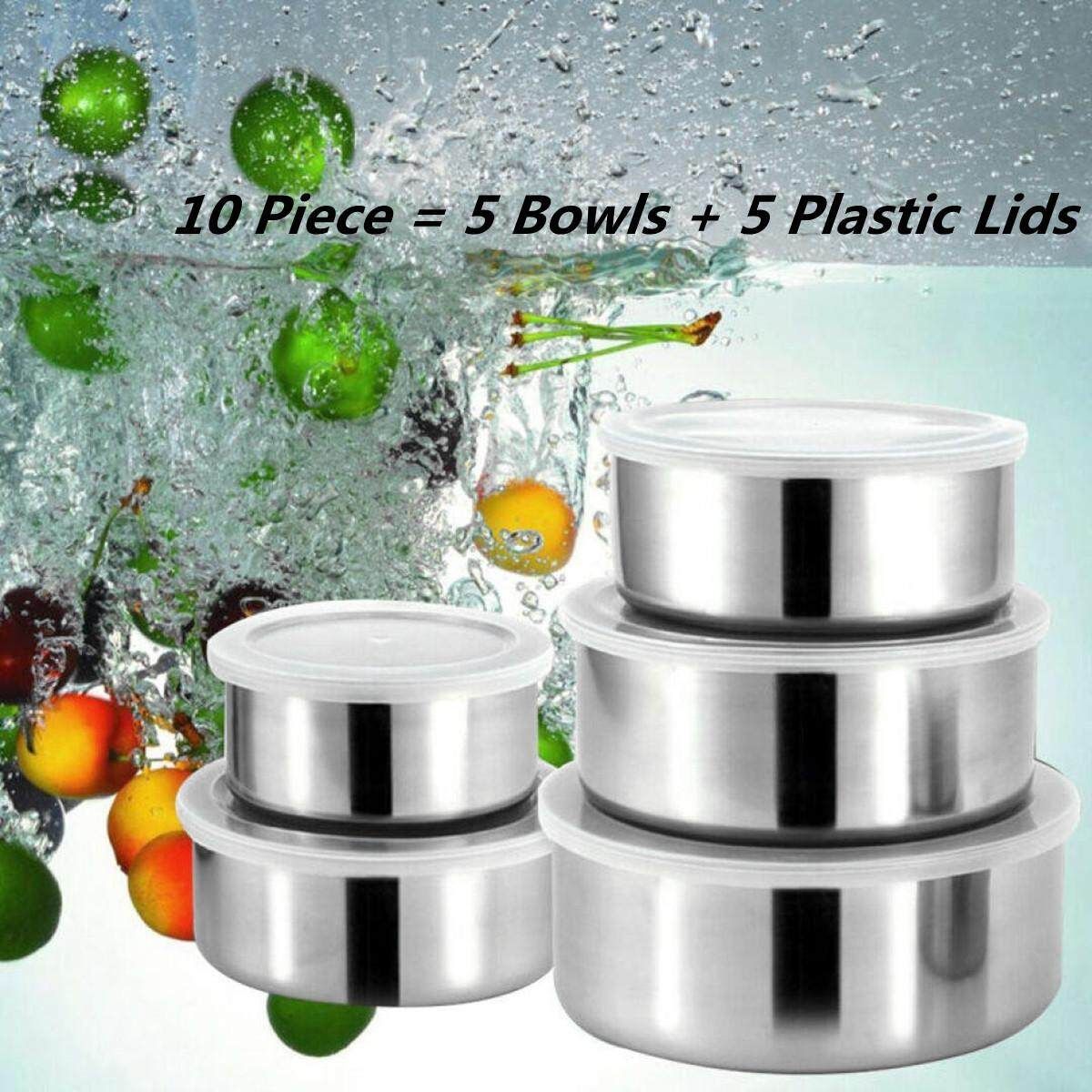 1X 10 Piece : Home Mixing Stainless Steel 5 Storage Bowl Set with 5 Plastic Lids