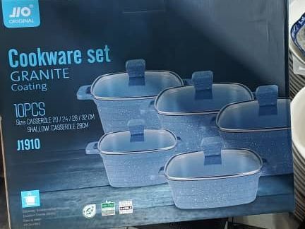 10pcs Jio cookware set has a base perfect for inducing health cooking. The pots are ovenproof and dishwasher safe. Excellent for frying and braising with perfectly shaped heat resistant handles. With modern design and cooking, this cookware set is your best kitchen partner. It can be used on Halogen cooktop, Electric cooktop, Ceramic cooktop, and gas cooktop.