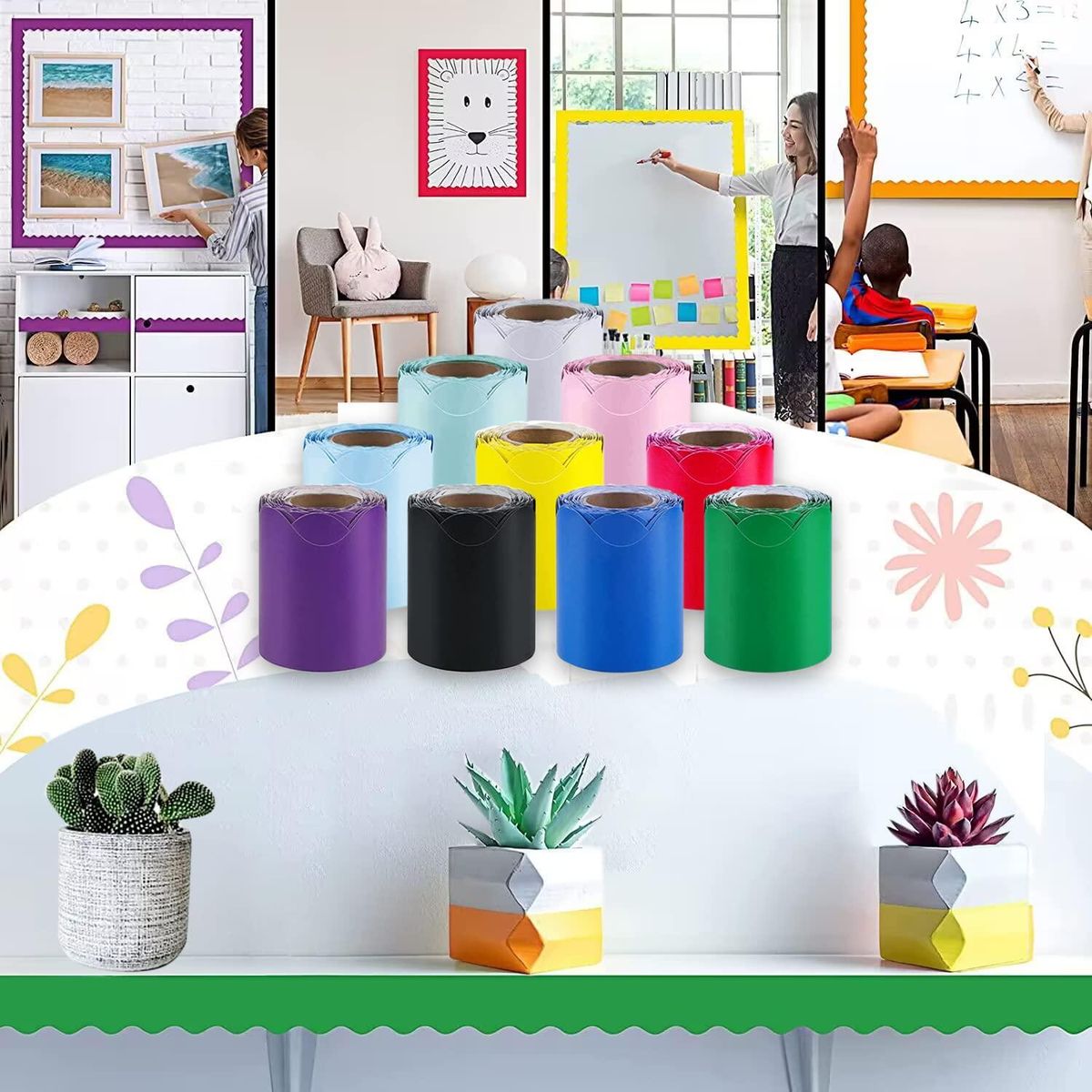 Classroom Decoration: 10 colors bulletin board border set to make your classroom vibrant, decorate your learning space with various colors, perfect for whiteboard, cork board and other classroom decoration, create a new look for bulletin board, wall, window, school classroom