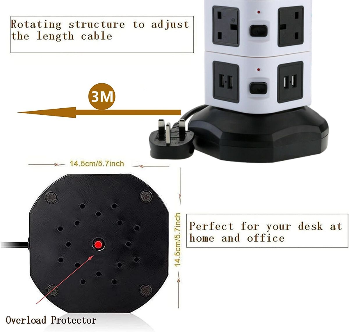 - All Around Protection : Surge Protection ,The power strip switches off automatically in case of overload,Connected power line more secure plug.