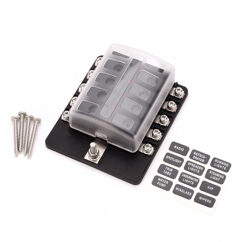 10 way fuse box holder with 10A, 15A, 20A, 25A, 30A fuses.