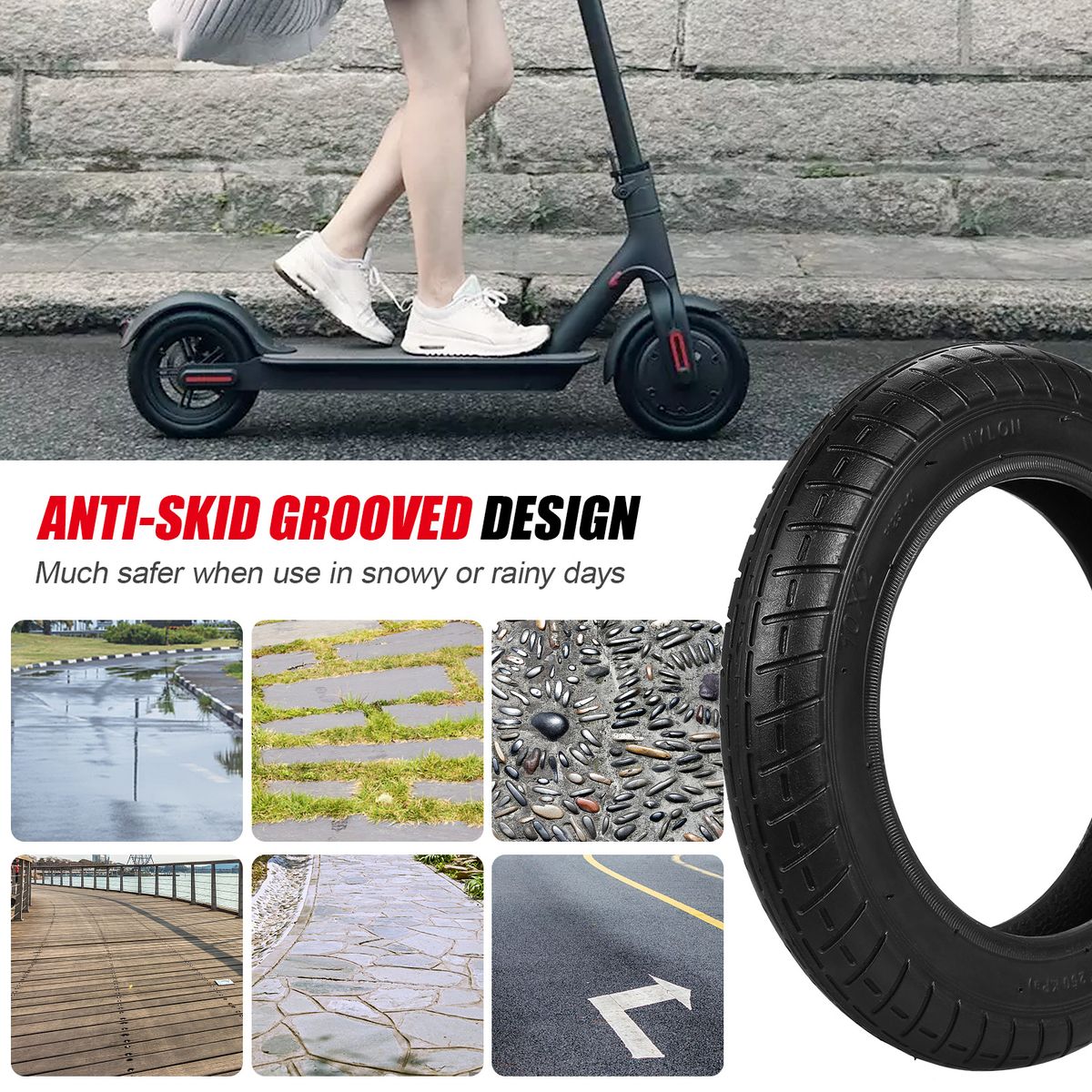 Anti-skid grooved pattern provides better grip, stability and handling on different surfaces.