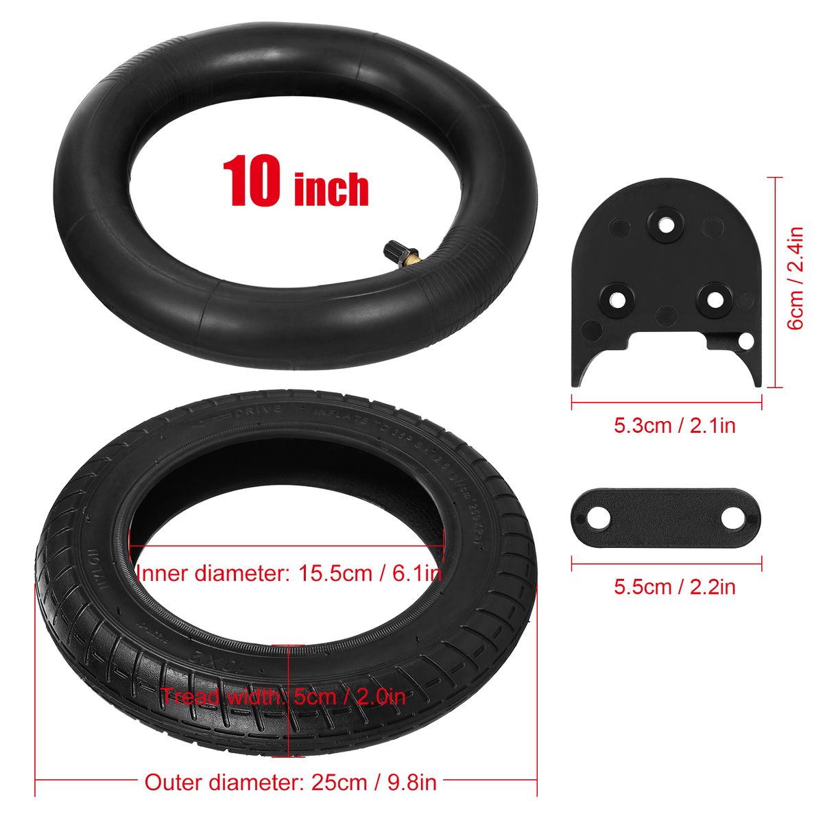 Includes 10x2.0 inch inner tubes, outer tires, mudguard gasket, kickstand gasket, screws, LED extender cable.