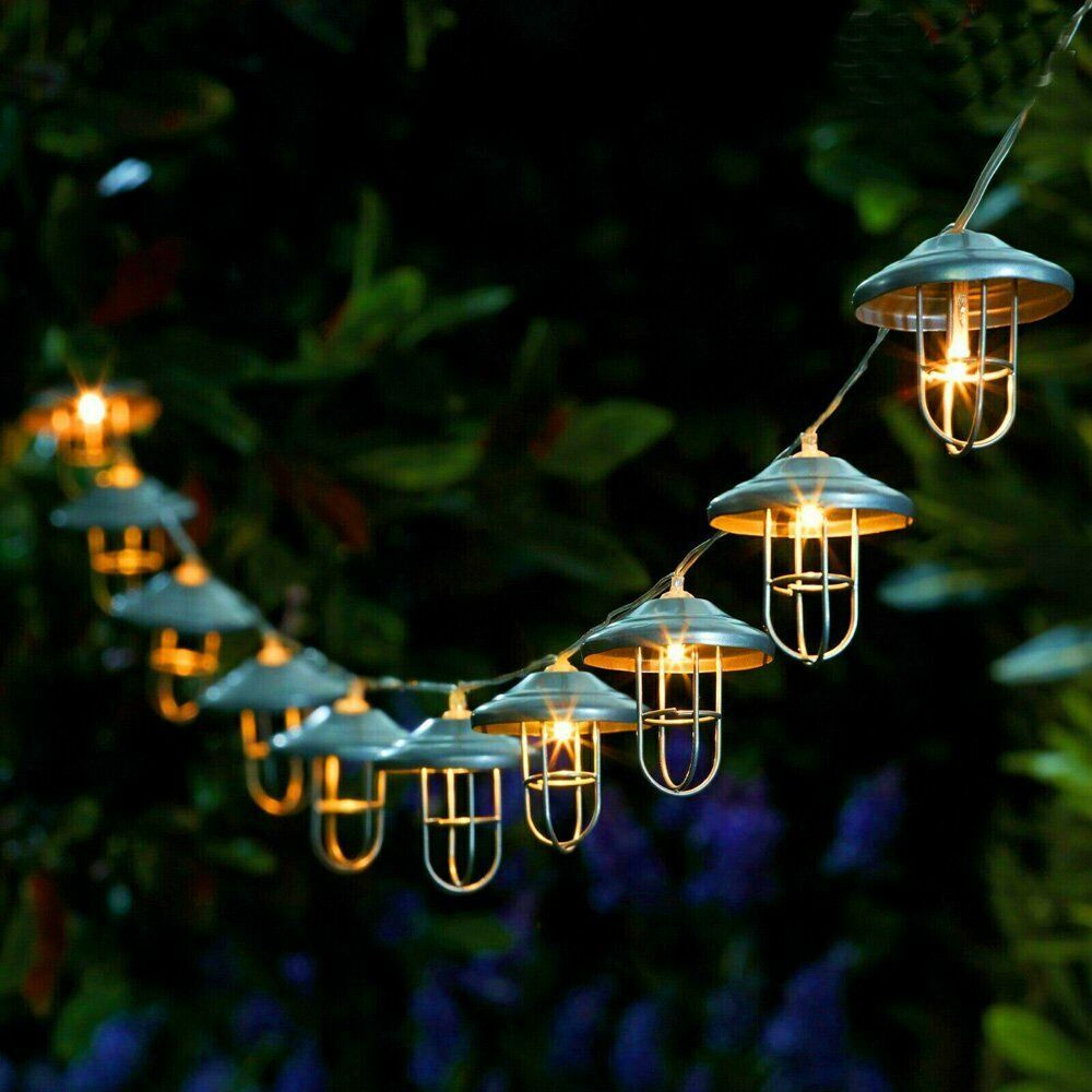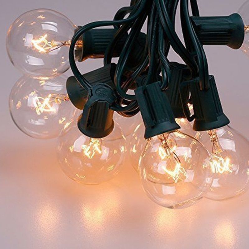10 meter long with 20 lamp holders filament bulbs of 4 watts each should be suitable. Is waterproof which can last for years under sun and rain.