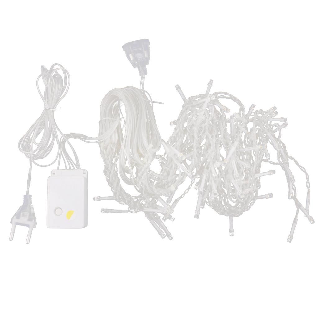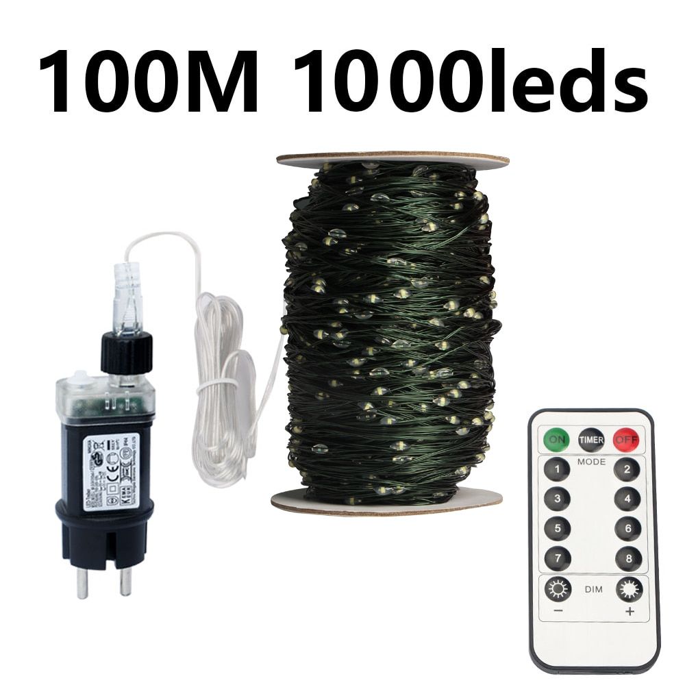 Energy-saving, long operating life, easy to use Led lights, Powered by AC adapter.Perfect for decorating your home, shop, office, Christmas trees and more. It has different sparking modes (change to the next mode by pressing the control button once). These lights bring you into the Christmas mood effortlessly.The string has white lights only, with 8-mode controller. Multiple display modes including flashing, chasing, constant, etc. Different sparking modes could be changed by pressing the control button. It has 100 and is 10 metres long.