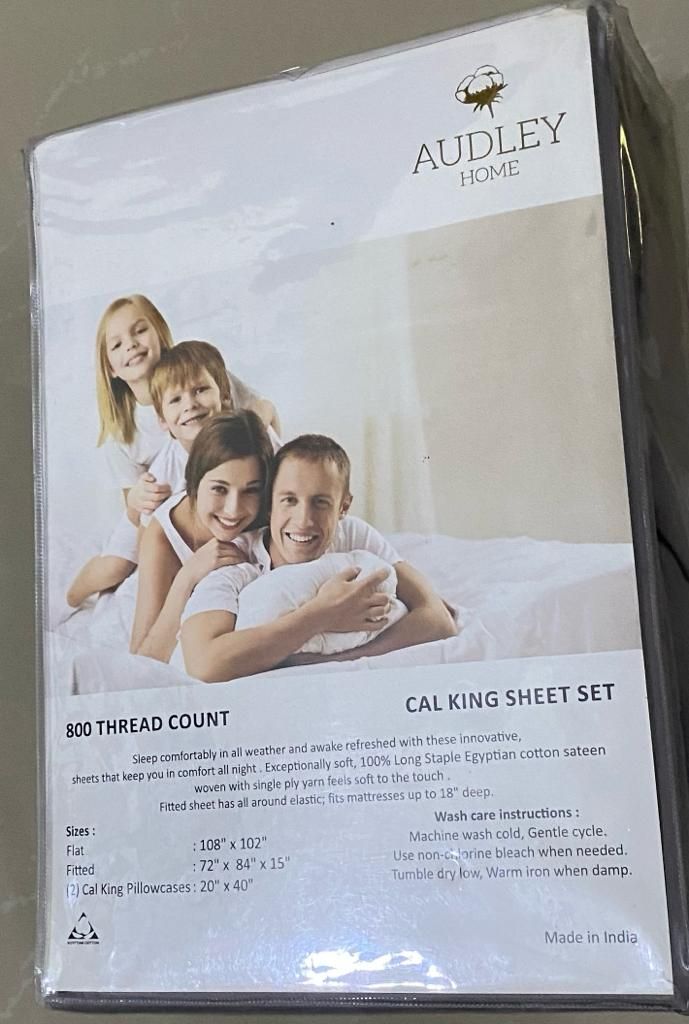 Flat 108" x 102" Fitted 72" x 84" x 15" 2 Cal King Pillowcases 20" x 40" |