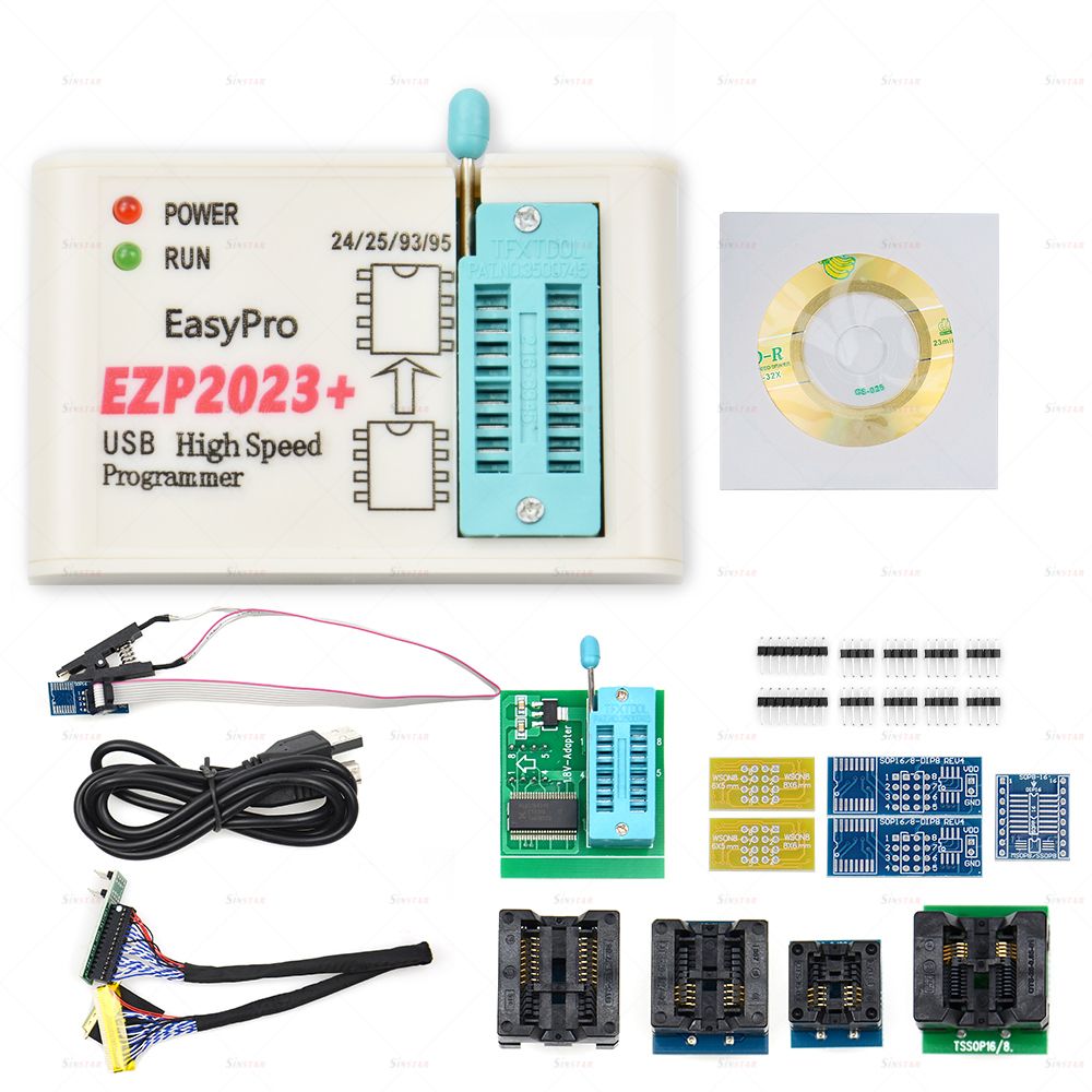 1X 100% EZP2023 USB Programmer + 12 adpters Support 24 25 93 95 Flash Bios Minipro Compiler Better Than EZP2019