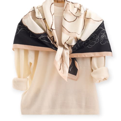 Buy 100 % Floral Print Silk Scarf - Beige in Nigeria