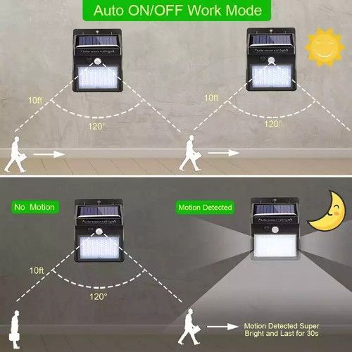 NEW TECHNOLOGY: Solar lights outdoor use the world's leading solar panels (monocrystalline silicon) to convert up to 19% of sunlight into electrical energy, charging time is at least 5% faster than other models of solar wall lights (polysilicon) on the market. Especially in winter or rainy days, when the light is not enough, save your charging time!SUPER BRIGHT SOLAR POWERED LIGHTS: Solar lights outdoor equipped with 100 super bright LED beads, Solar motion sensor lights outdoor provides excellent illumination of up to 500 lumens, Solar sensor lights which is far brighter than other similar LED solar lights.