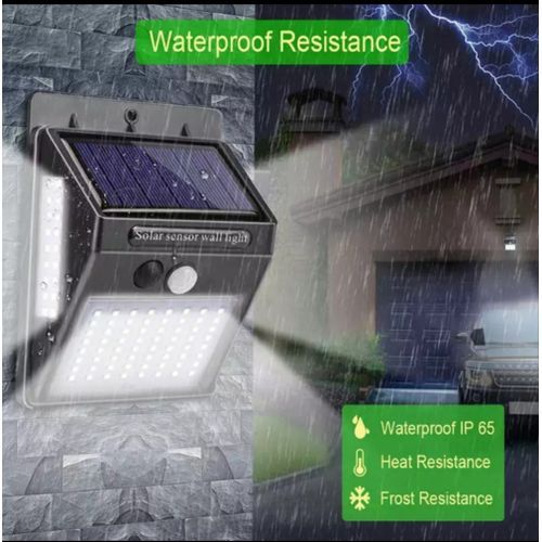 the light has its solar panel perched on top of the light fixture, which faces directly up to the sun for maximum solar energy intake. And the conversion rate of solar energy has been improved to reach up to 13%-14%.Our units are made of high-impact ABS which can withstand snow, rain and other extreme weather conditions. waterproof and heatproof, solar powered lights, suitable for most kinds of weathers.Solar lights outdoor equipped with 100 super bright LED beads,Large area solar panels,Powerful sensor ball head offers strong motion sensitivity Switch wrapped with a layer of waterproof plastic.