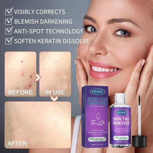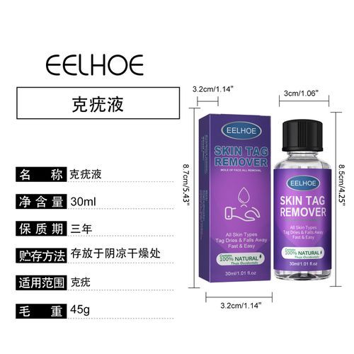EELHOE Skin Tag Remover:Skin tag remover liquid is fast and easy to applyNatural skin tag remover won't cause pain or scarringSkin tags will dry up and fall away painlesslyWorks on all skin types and even for sensitive areasWorks in just weeks using only a few drops a dayHomeopathic, topical remedyMade from all-natural plant extractsSpecial formula contains active ingredient Thuja occidentalisPure essential oil recognized for its tag-removing propertiesHomeopathic skin tag remover is 30ml in size