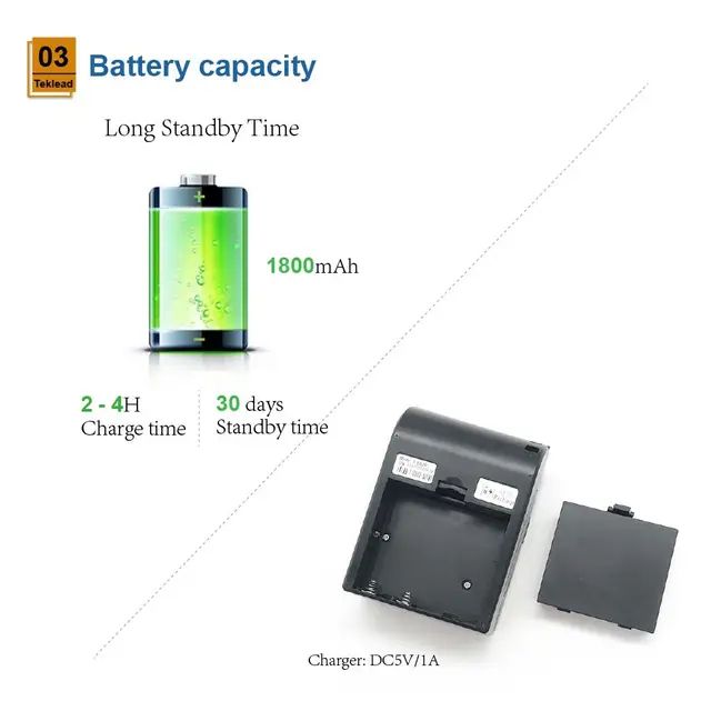 Built-in 1500mAh rechargeable lithium-ion battery, can work continuously up to 8 hours.