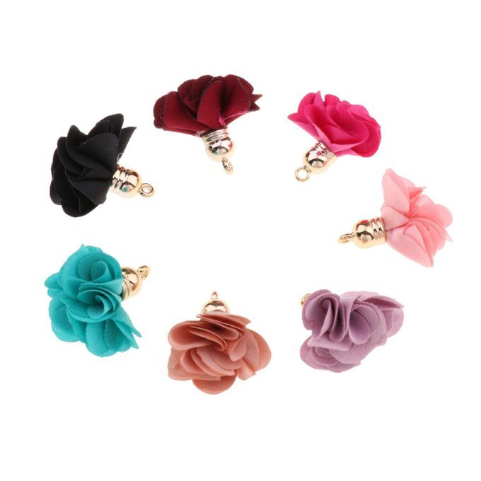 Floral Pendants Tassel;100pcs Cloth Fabric Flower Pendants Accessories;Acrylic Pearl Floral Petal Tassel Charms Supplies;Golden Filigree Flower Metal Cap vibrant color;Mixed Color for DIY Earrings Keychain DIY Jewelry;Jewelry Making Crafts 30mm Necklace Crafts
