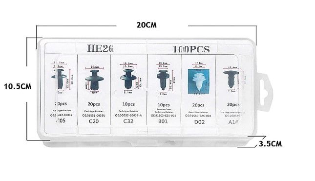 - Need not worry about lost or damaged body fasteners.All the necessary retainers for exact replacement of old and broken retainers.