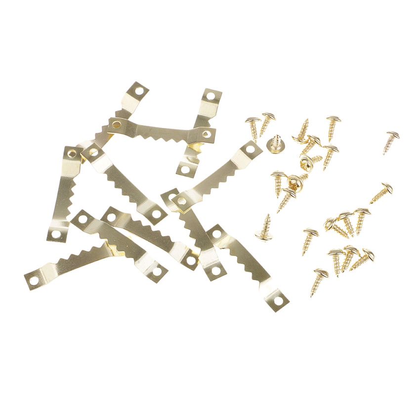 100 Gold Metal Single Side Sawtooth Hangers Double Hole with 200 Nails