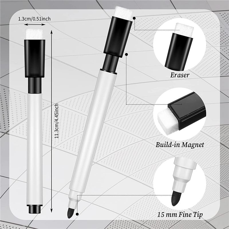 MAGNETIC FEATURES: These dry erase markers are designed with a magnetic erasing cap that easily adheres to any magnetic receptive surface for your convenience, and the eraser is detachable, saving space and energy