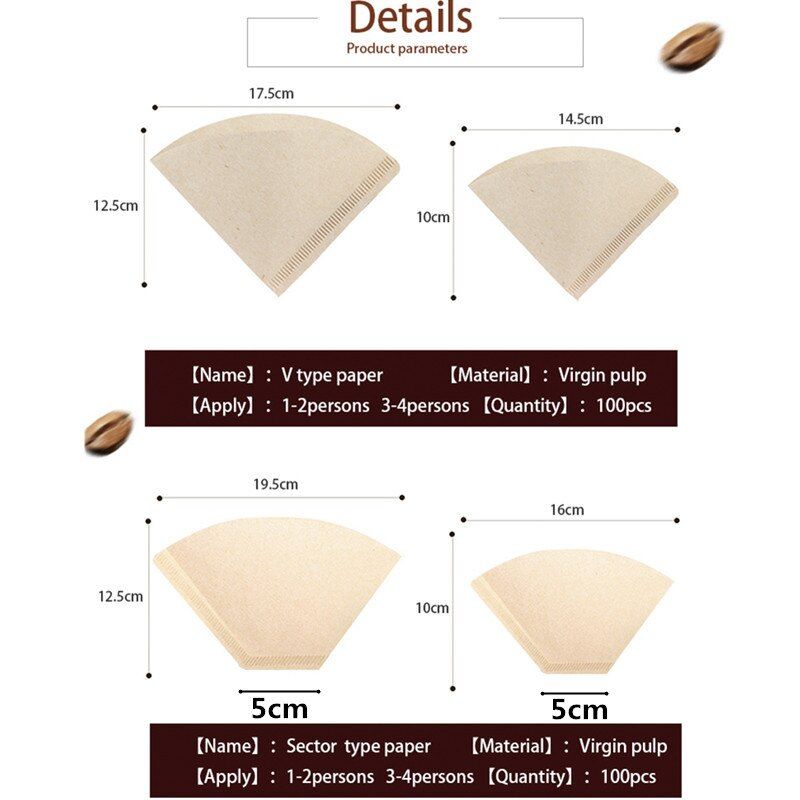 1X 100 Pieces New Wooden Hand V60 Drip Paper Coffee Filter