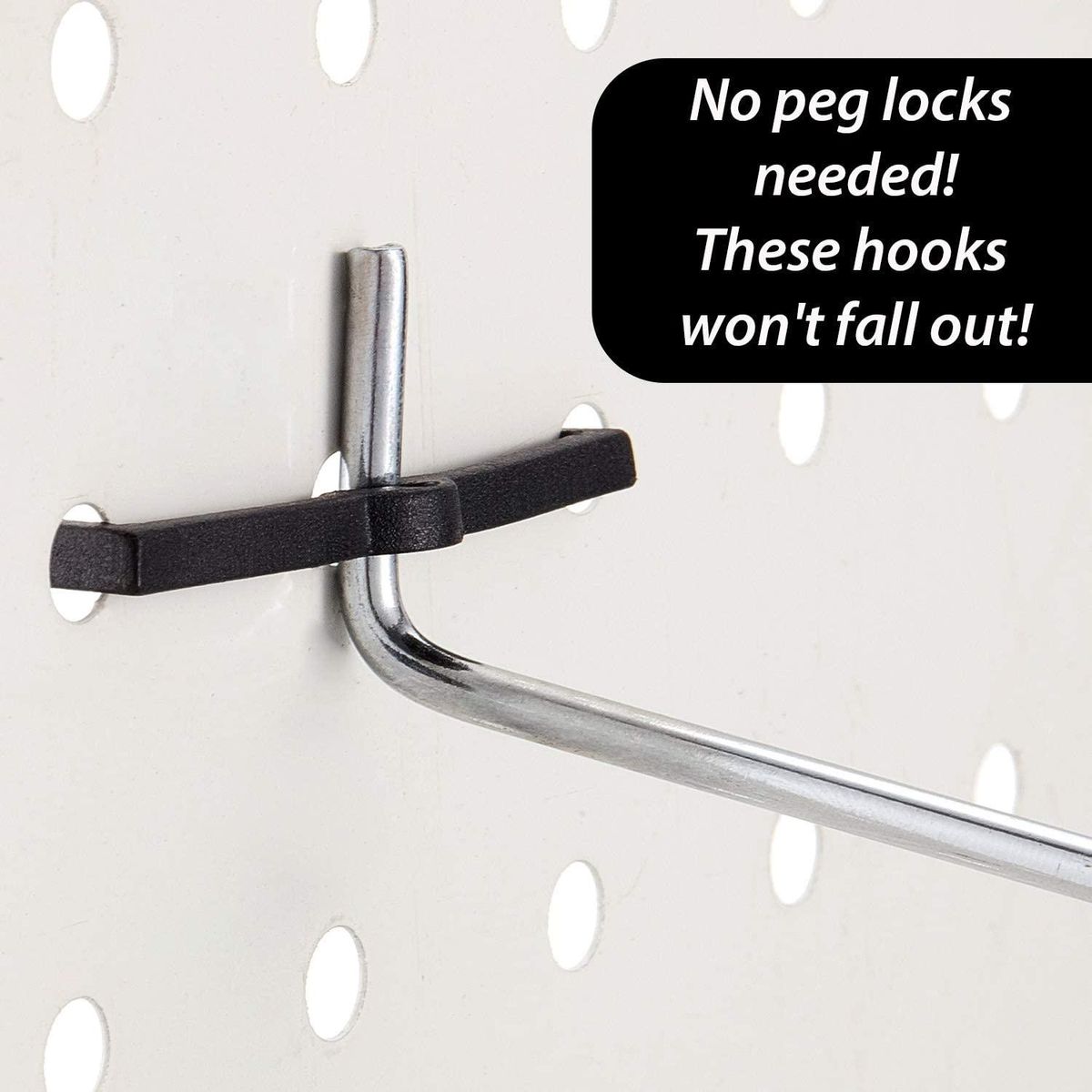 Effortless to assemble: just clip over the hook locks into the pegboard holes on each side of peg hooks, no need other tools, easy and simple to install, with well-made structure and firm material, not easy to break, can serve you for a long time