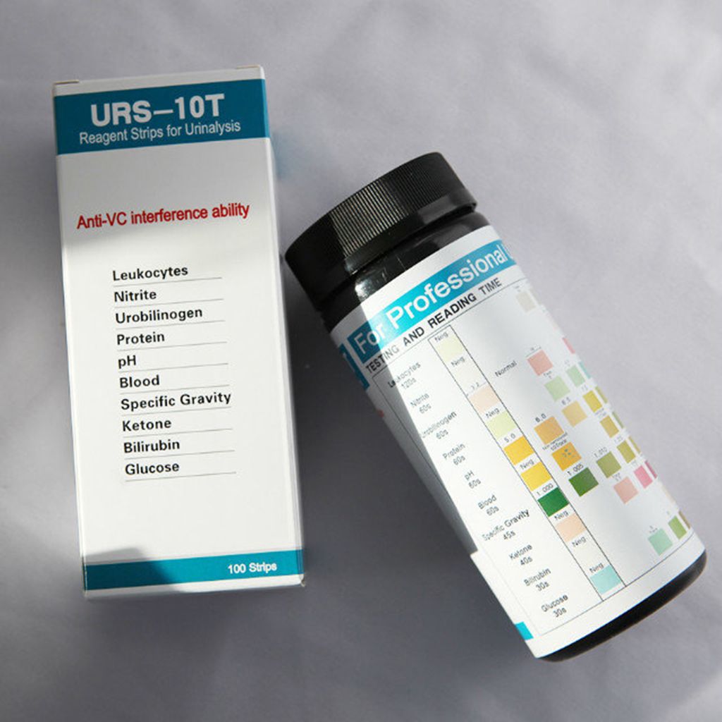 100 Strips URS-10T Urinalysis Reagent Strips 10 Parameters Urine Test Strip Leukocytes, Nitrite, Urobilinogen, Protein, pH, Blood, Specific Gravity, Ketone, Bilirubin, Glucose
