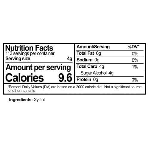 This sugar free sweetener is 100% all natural xylitol and is the perfect substitute for sugar in your baking and cooking. This xylitol sweetener actually helps to prevent tooth decay. With 40wer calories than sugar, it helps to keep your caloric intake down.