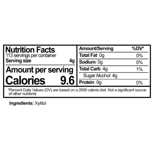 This sugar free sweetener is 100% all natural xylitol and is the perfect substitute for sugar in your baking and cooking. This xylitol sweetener actually helps to prevent tooth decay. With 40wer calories than sugar, it helps to keep your caloric intake down.