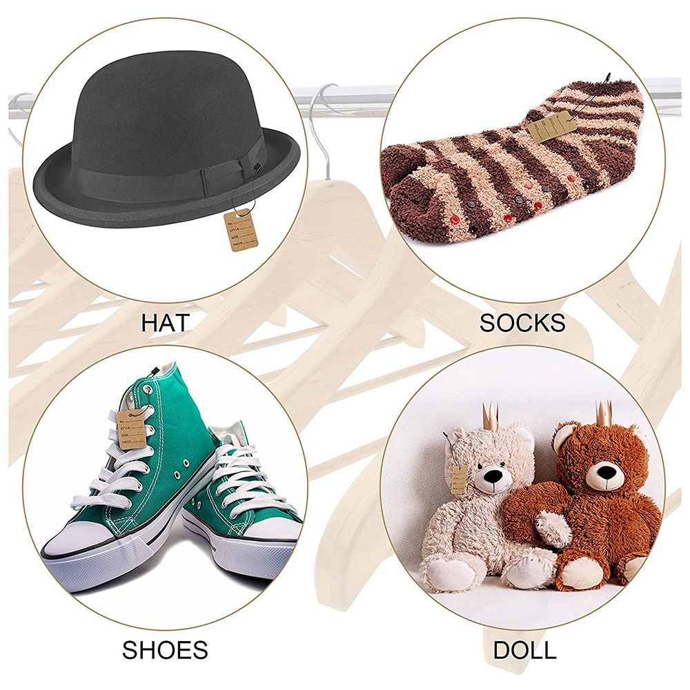 Wide usage: clothes tags can be written down with prices, serial numbers, brand names, sizes, colors, etc. and you can attach them to garment woven labels; Wonderful for displaying clothing, shoes, toys, jewelry or other items