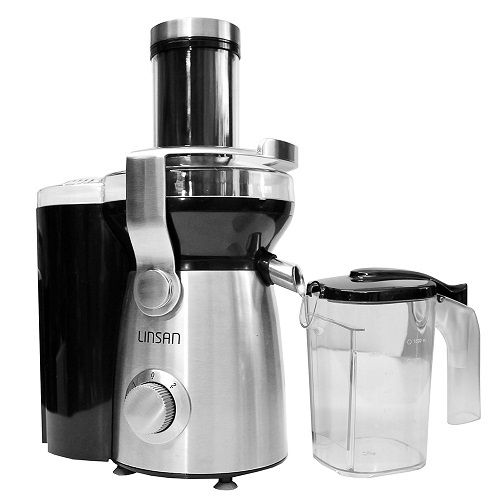 Linsan Pro Juicer Lin 901L is the most powerful juicer with actual 1000watts.It produces a glass of fresh fruit or vegetable juice in just a few seconds. The commercial-quality extractor's extra-wide feed tube minimizes the need to precut ingredients, so making delicious and healthy juice quick and simple.Extremely powerful over 1000watts motor with two speeds, high for hard fruit/vegetables and low for soft fruits. Super efficient - extracts up to 30% more juice than traditional models. Extra-large feed tube with 85mm diameter for a whole fruit thereby eliminating the need to precut ingredients. Stainless-steel mesh basket filters out pulp, which is automatically ejected into a removable 2L pulp container - no paper filters are required. Safety interlocking switch/handle stops juicer from operating when not installed or fitted properly Stainless steel double safety arm prevents juicer from working if cover is not in place. Overload thermos protection button safeguards against overheating.