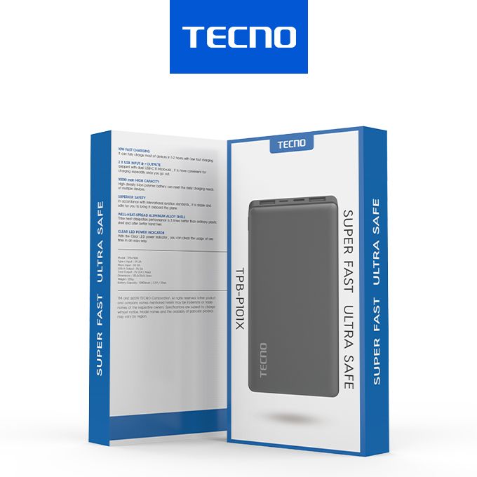 Super Safety - Intelligent Controlling IC: TECNO Power Charging Bank's built-in Intelligent Controlling IC can effectively prevent your Power Charging Banks overcharge, overvoltage, overcurrent, and short circuits. you can get more convenience and happiness from these high-quality Power Charging Banks.
