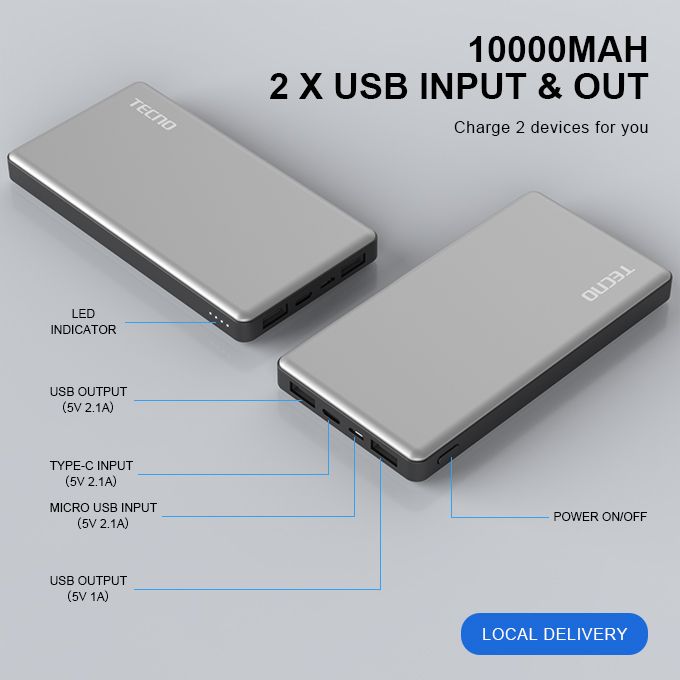 What You Get: TECNO 10000mAh portable charger (2022 Version), Micro USB Cable and type-c 2 in 1 cable , User manual