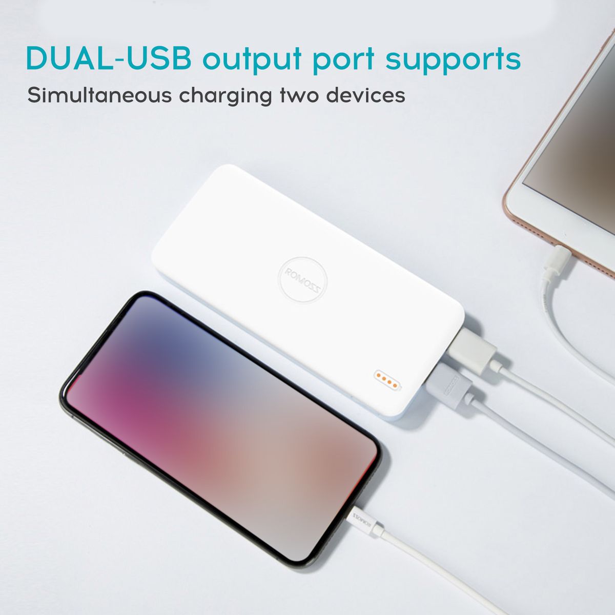 【Dual USB output ports】 Supports charging two devices at the same time,and has more safety control circuit ensure both interface have enough power to charge;