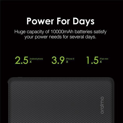 1 x Oraimo Power Bank.1 x Micro USB Cable.1 x User Manual.