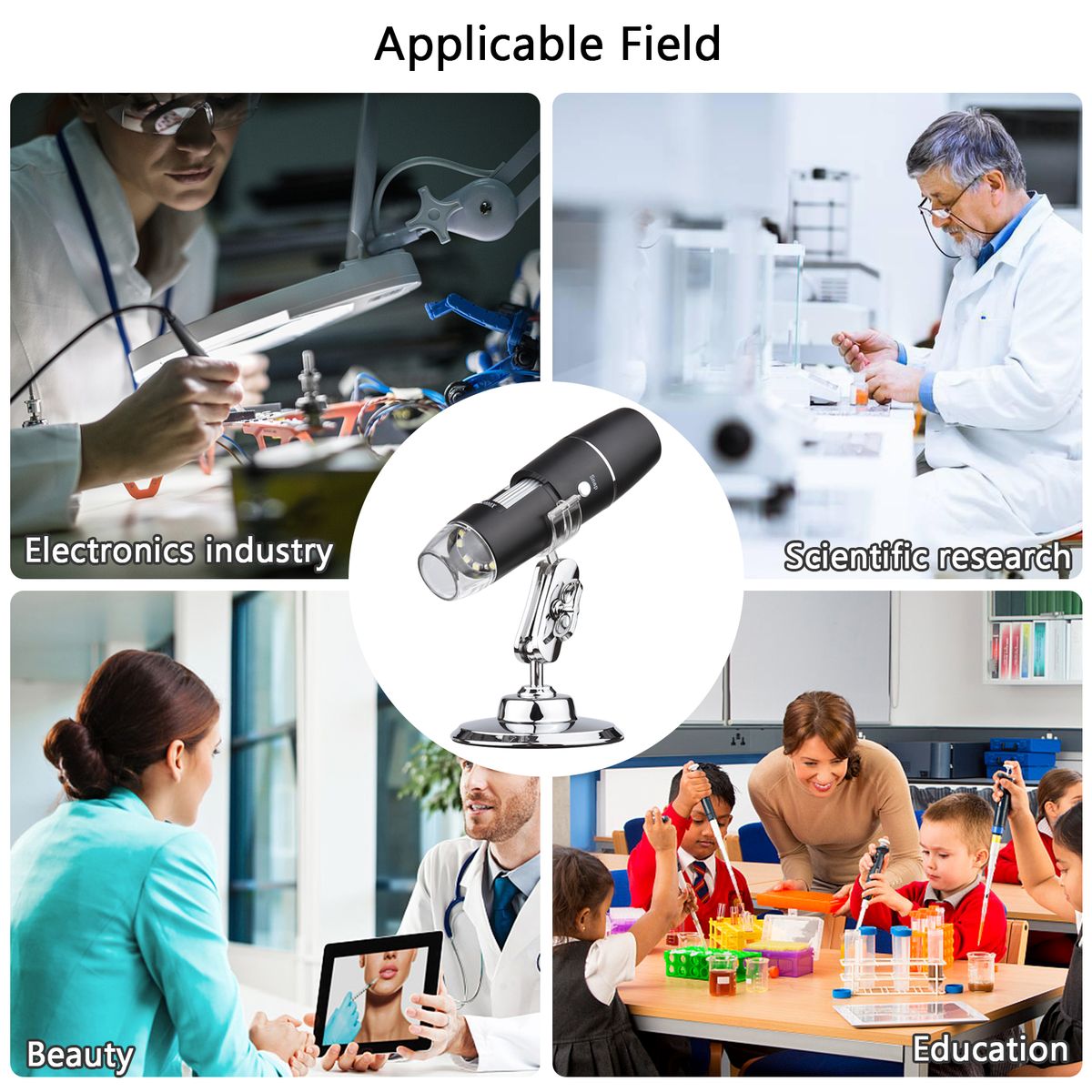 [Wide Application] Can be applied in electronics, industry, beauty, scientific research, and so on, perfect for insect, plant, skin observation, industrial testing, circuit board detection, knitwear testing and more, a good helper for students, electronic engineer, beautician, doctor, curious kids, etc.