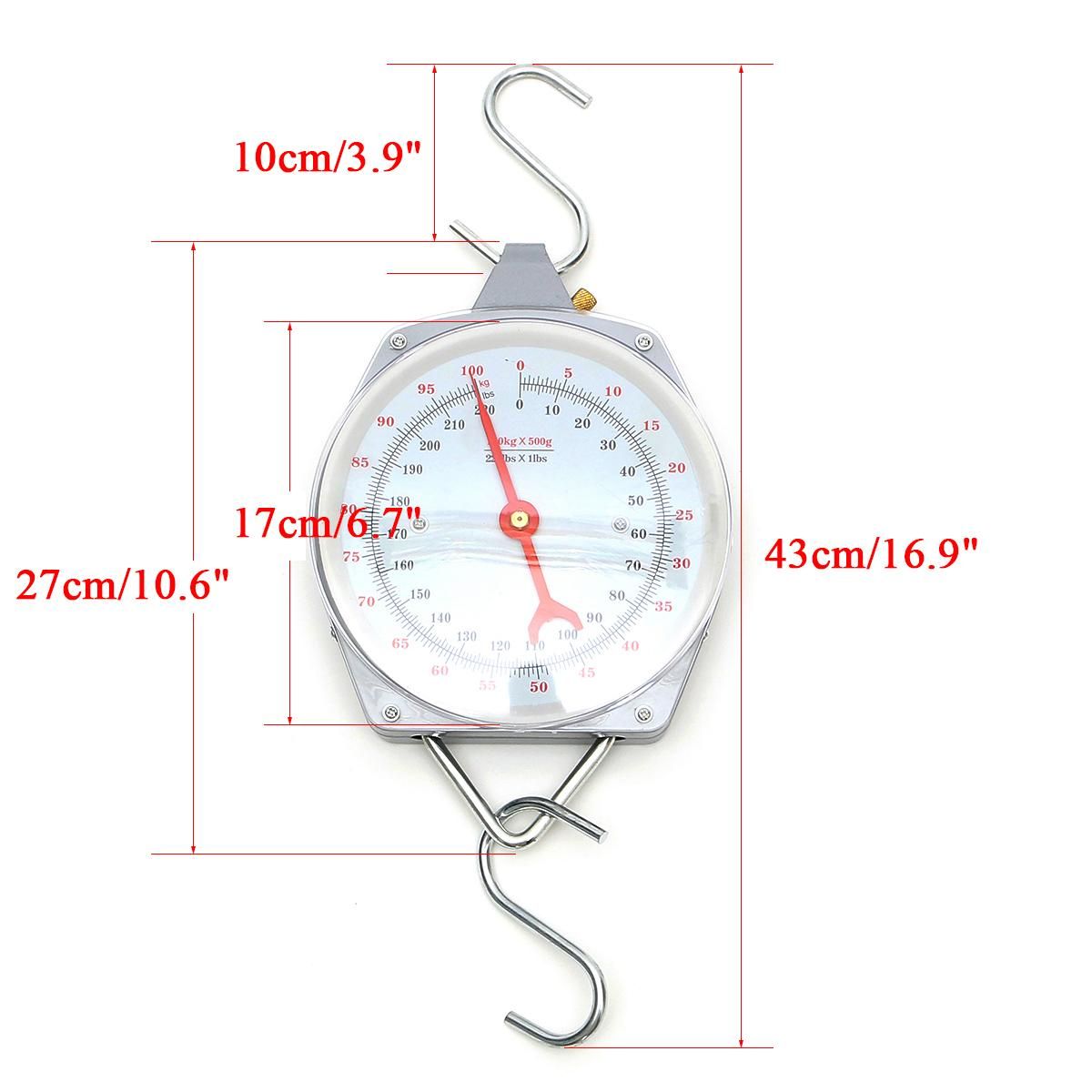 1X 100kg 220lbs Capacity Alloy Mechanical Hanging Scales Mechanical With 2 Hook
