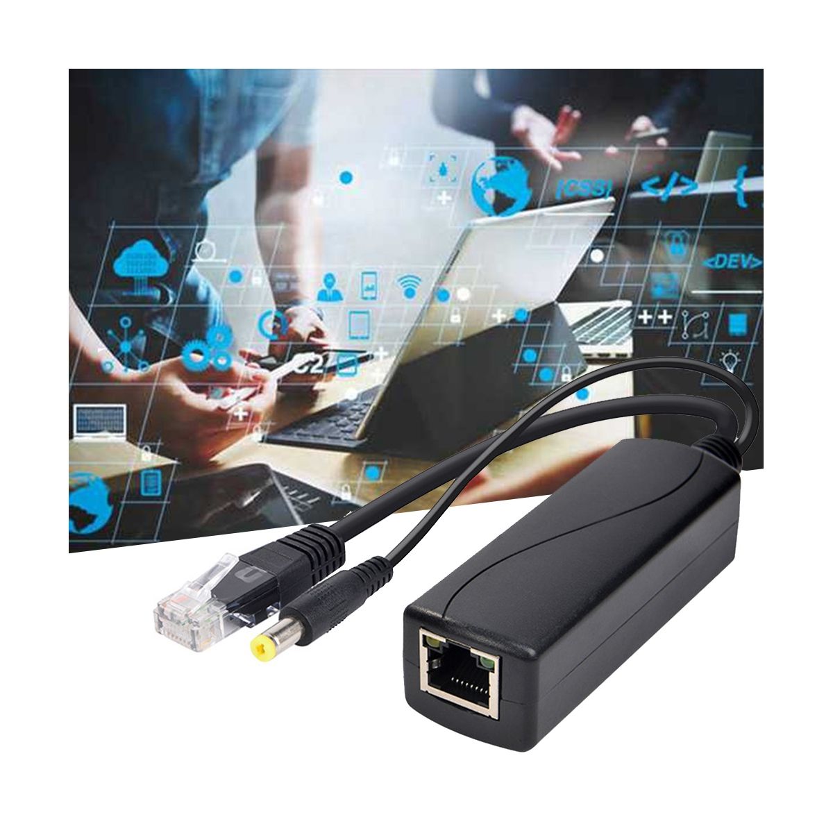 The PS5712P splitter separates the power and data signals transmitted through the network cable, and is used in conjunction with power supply equipment that conforms to the IEEE 802.3af standard (such as PoE power supply switches, PoE centralized power supplies, PoE power supply transceivers, etc.), and can be used for networks that do not support PoE.